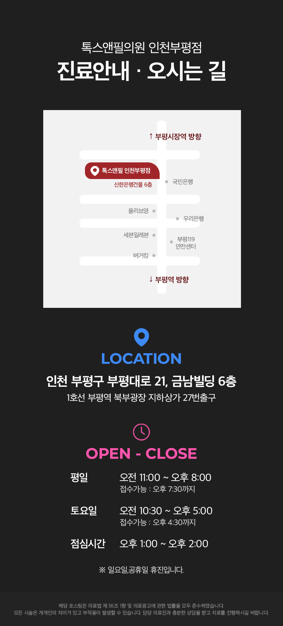 보다 만족스러운 변화를 체감하고자 하셨던 분께서는 언제라도 본원을 찾아 마음 편히 이야기를 먼저 나눠보시기 바라겠습니다. 지금까지 저희는 톡스앤필 부평점이었습니다. 감사합니다.