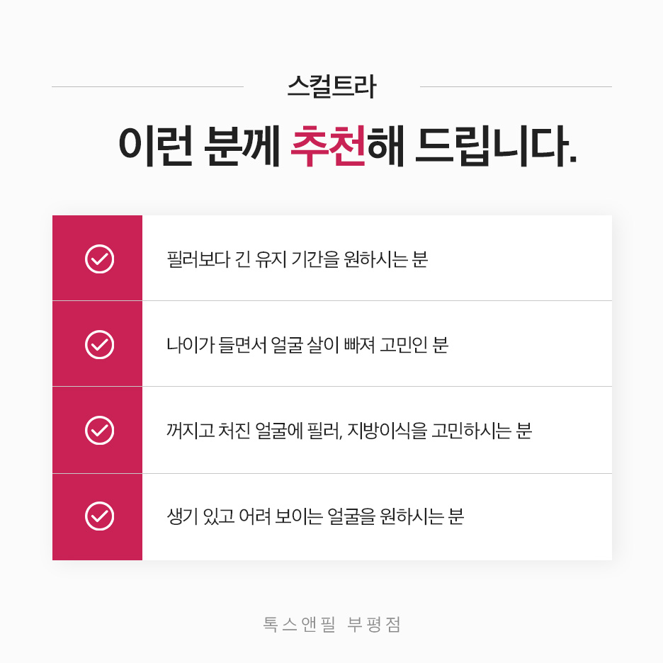 나이가 들어가다 보면 우리 모두 노화 현상을 경험하게 됩니다. 그런데 이에 관련해 아쉬운 마음을 느끼고 계셨다면 더 이상 혼자 고민하는 게 아니라, 부평스컬트라를 찾아 도움을 요청해 보셔도 좋을 텐데요. 톡스앤필 부평점은 이를 적용해 드림에 있어 아무런 어려움이 없습니다.